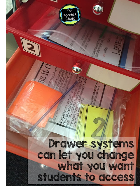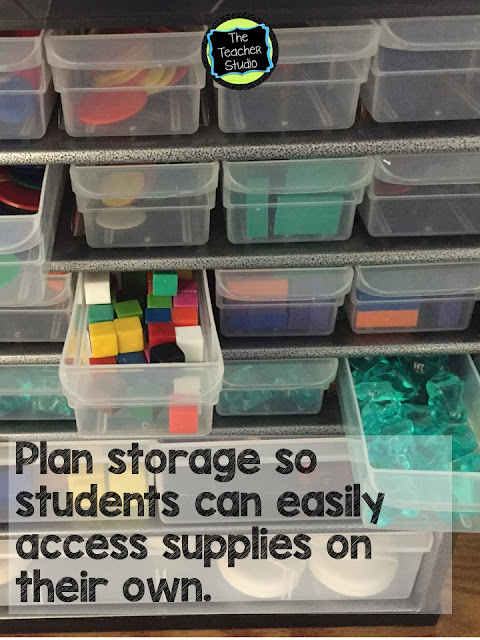 For me, this is huge. If I am teaching a small group or coaching a student, I don’t want to be interrupted to be asked where the rulers are or where to find something. I start my school year by showing students where everything is and how to put it away. After all, we don’t want them to only use a ruler or other supplies when we TELL them to, we want them to recognize when they are needed and go get them independently.