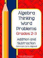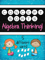 I also have a set of math concept sorts that I use to help with algebraic thinking as well as lots and lots of pattern work. Even being selective about the kinds of word problems we choose–making sure the “variable” moves and we aren’t always looking for the end result. I’ve linked a few resources below…see what you think!