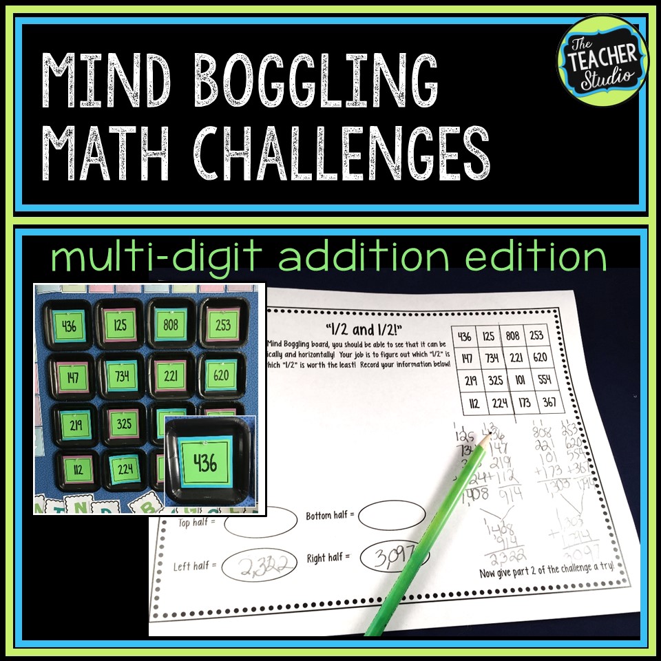 This is one of my favorites…totally computation–but forces students to estimate, reason, think, and persevere. I put it up as a bulletin board, but you don’t have to…everything students need is right on the reproducibles. Each set has 5 challenges, and each challenge has 2 parts for differentiation…and then there are bonus challenges at the end. TONS of practice but really asks students to use their brains in different ways. It’s a challenge–but students love it!