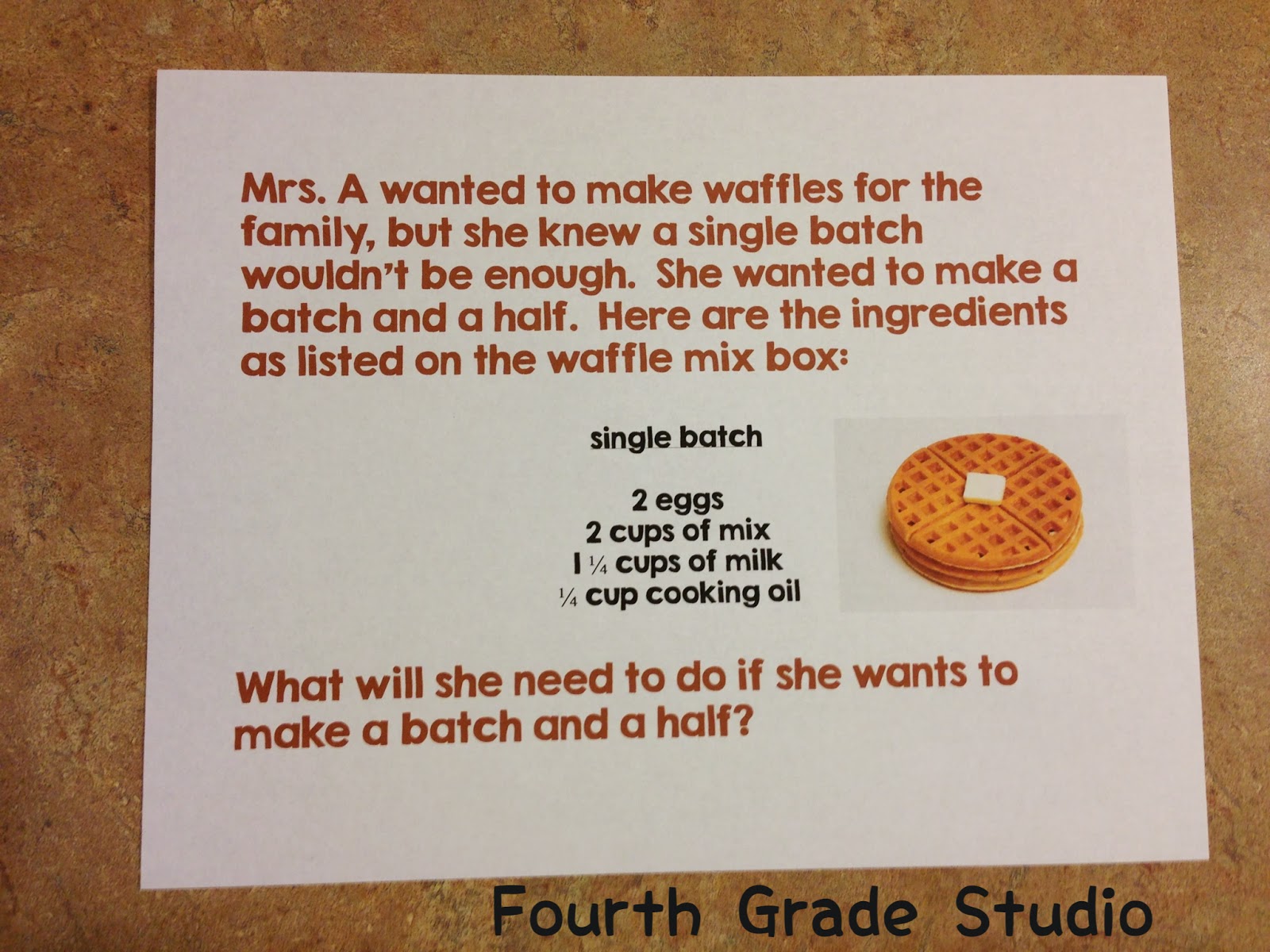Now, remember. This is all happening in the morning when my math brain isn’t fully awake, but I was pretty convinced I could mentally create a recipe and a half for 4 ingredients! As I was working, I couldn’t help but wonder how my students would do with this . . . so guess what–it’s another math problem ready to roll!