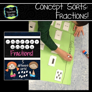 This was really enough information for us to begin this sort–where students used what they know about fractions to sort them into three categories–greater than 1/2, exactly 1/2, and less than 1/2.